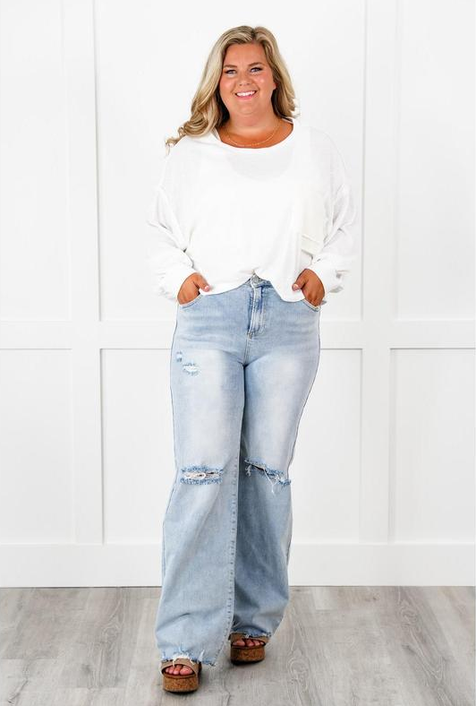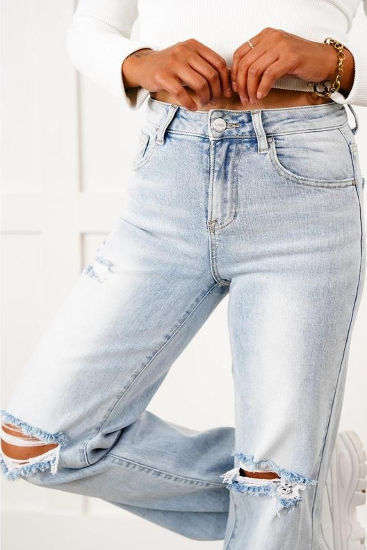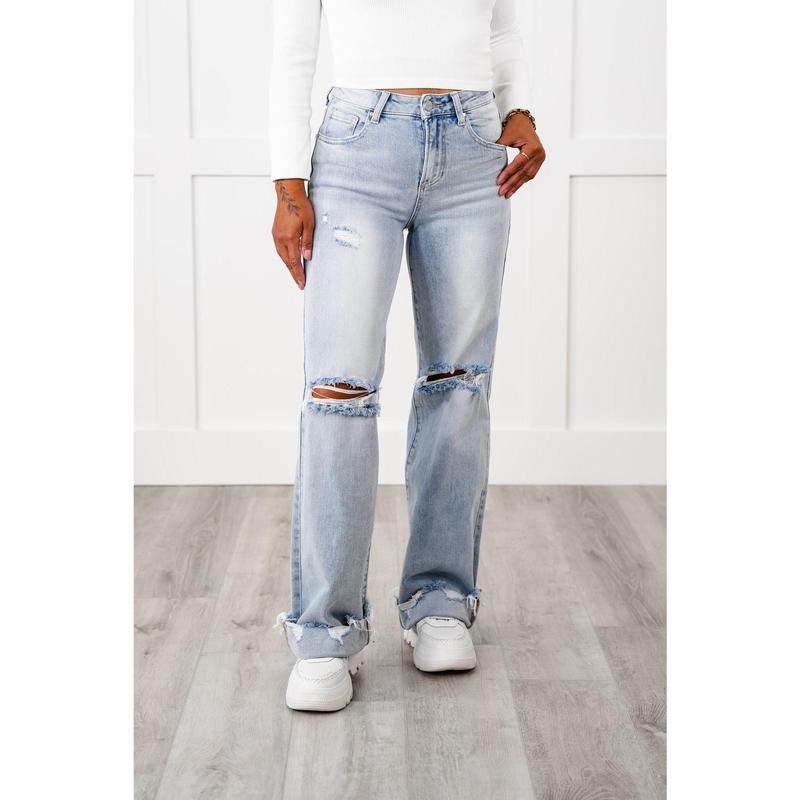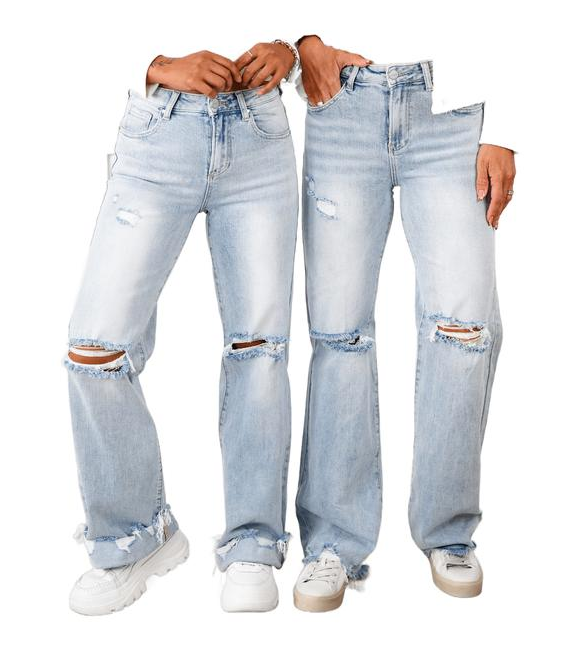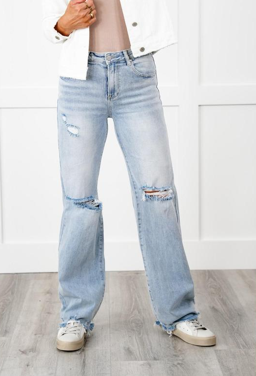 • Freckled Poppy x Risen High Rise Light Wash Distressed Straight Leg Jeans