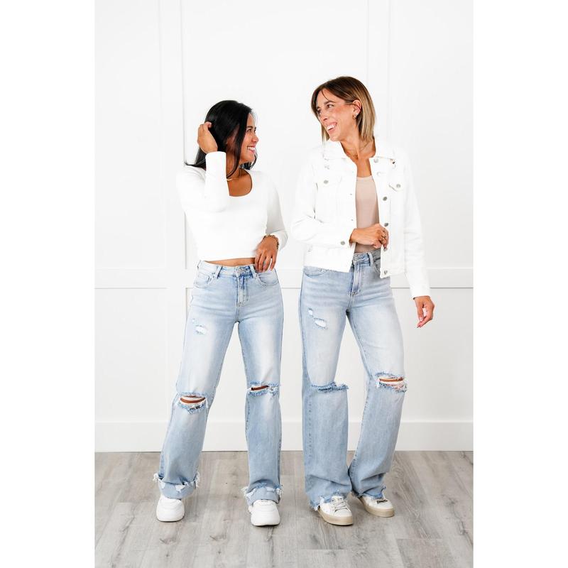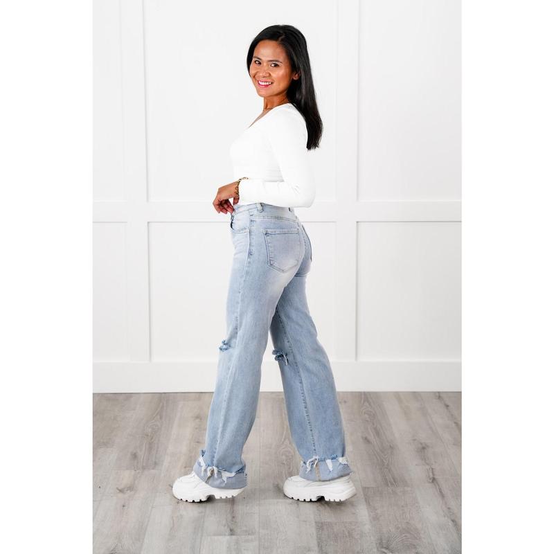 Freckled Poppy x Risen High Rise Light Wash Distressed Straight Leg Jeans
