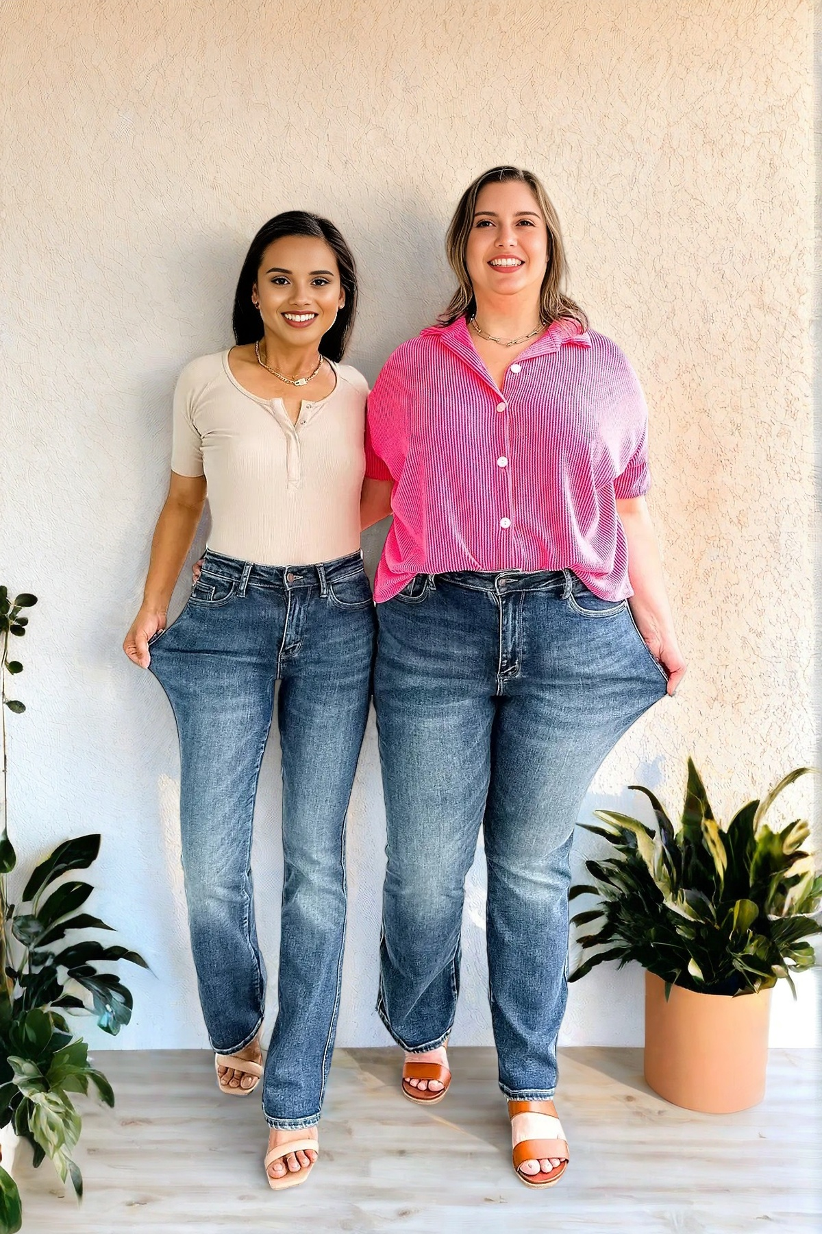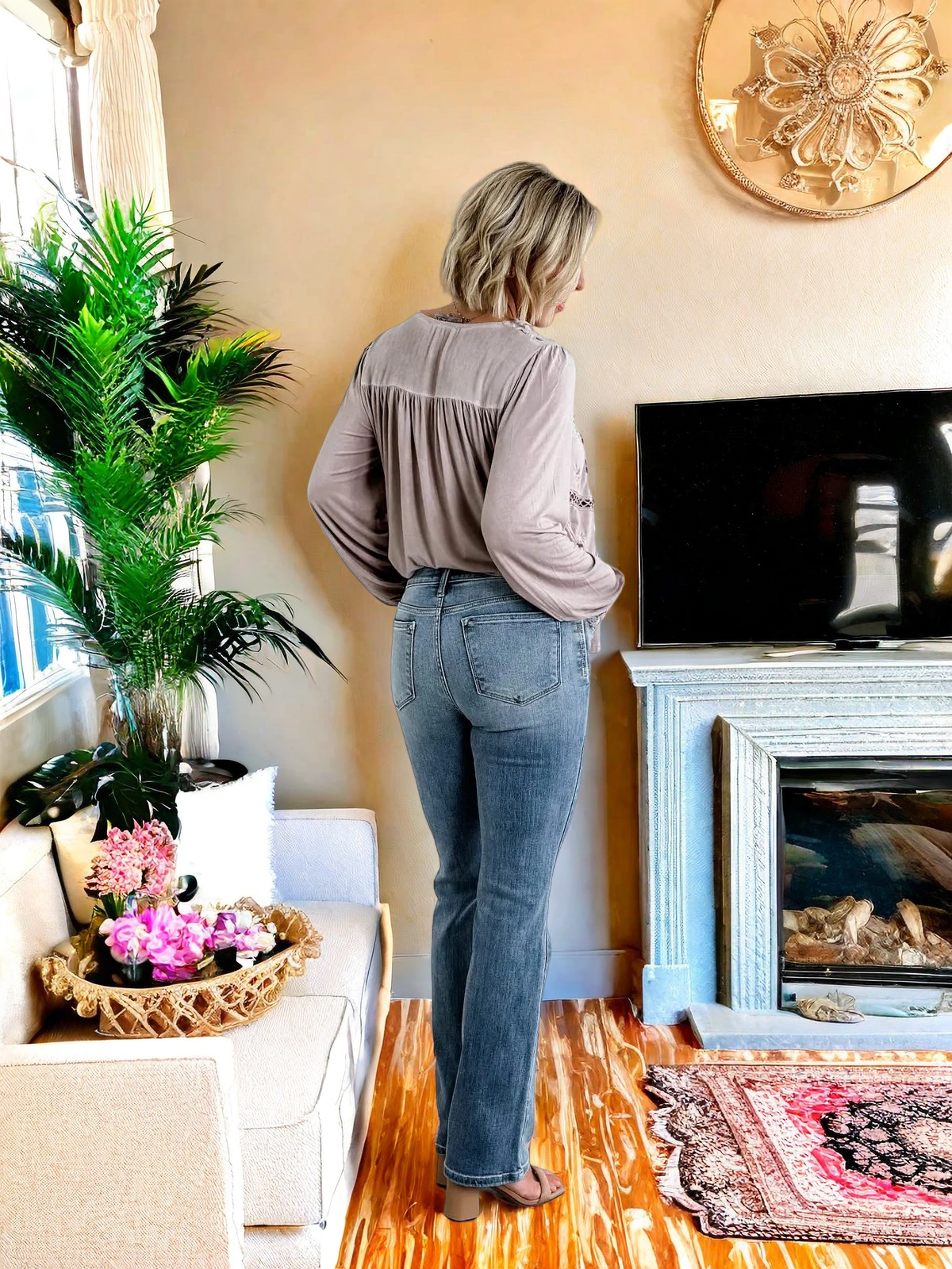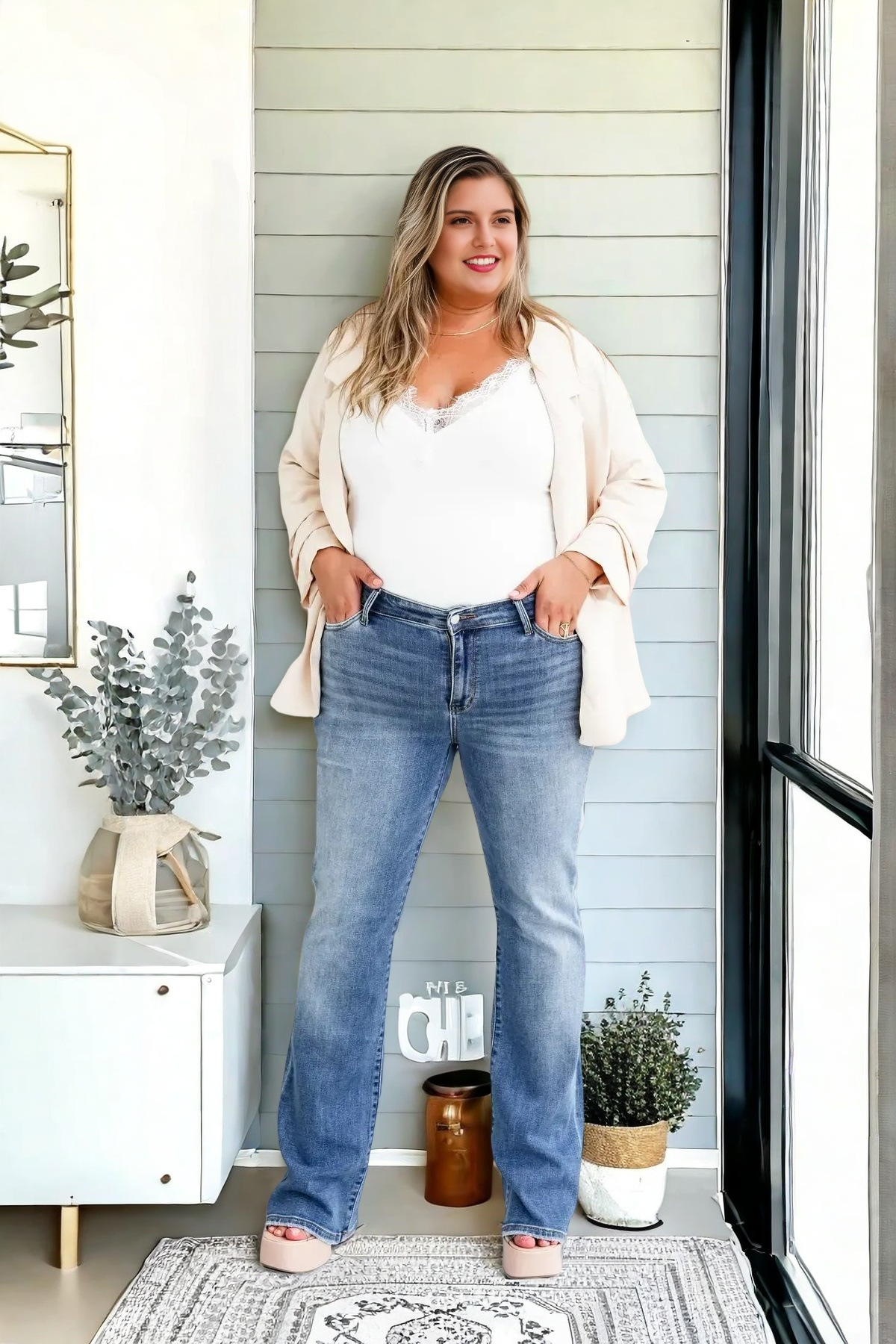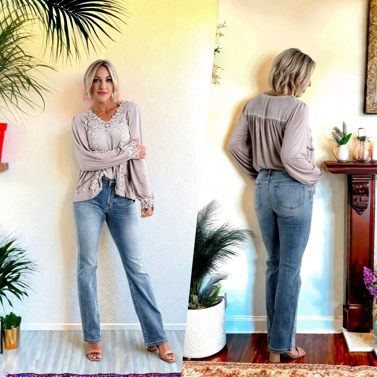 Ladies, meet your new wardrobe essential—the holy grail of bootcut denim! These jeans are an absolute game-changer, combining fabulous stretch, a flattering cut, and a perfectly designed wash that enhances your natural curves. Slip them on, and you’ll feel like you’re wearing your favorite pair of jeans—the kind that’s been with you forever, molding to your body like a second skin.