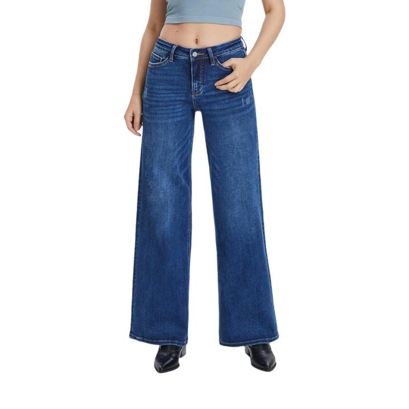 Mid-low Rise Baggy Stretchy Distressed Wide Leg Jeans