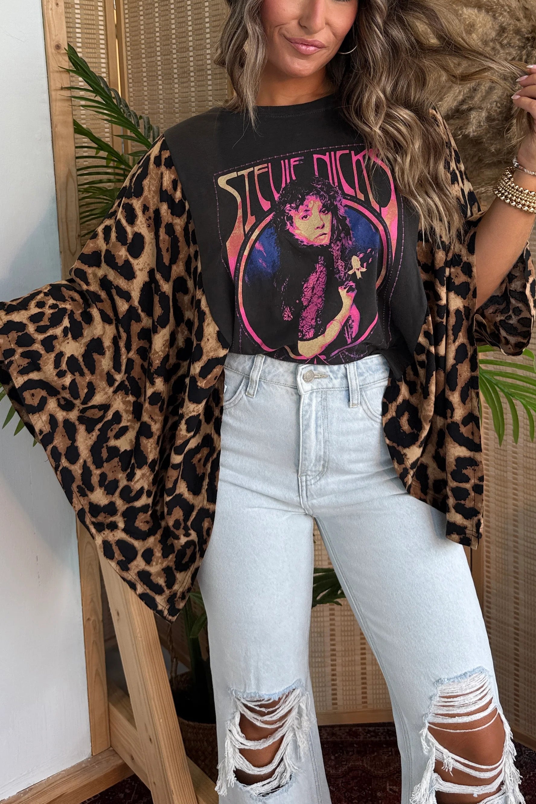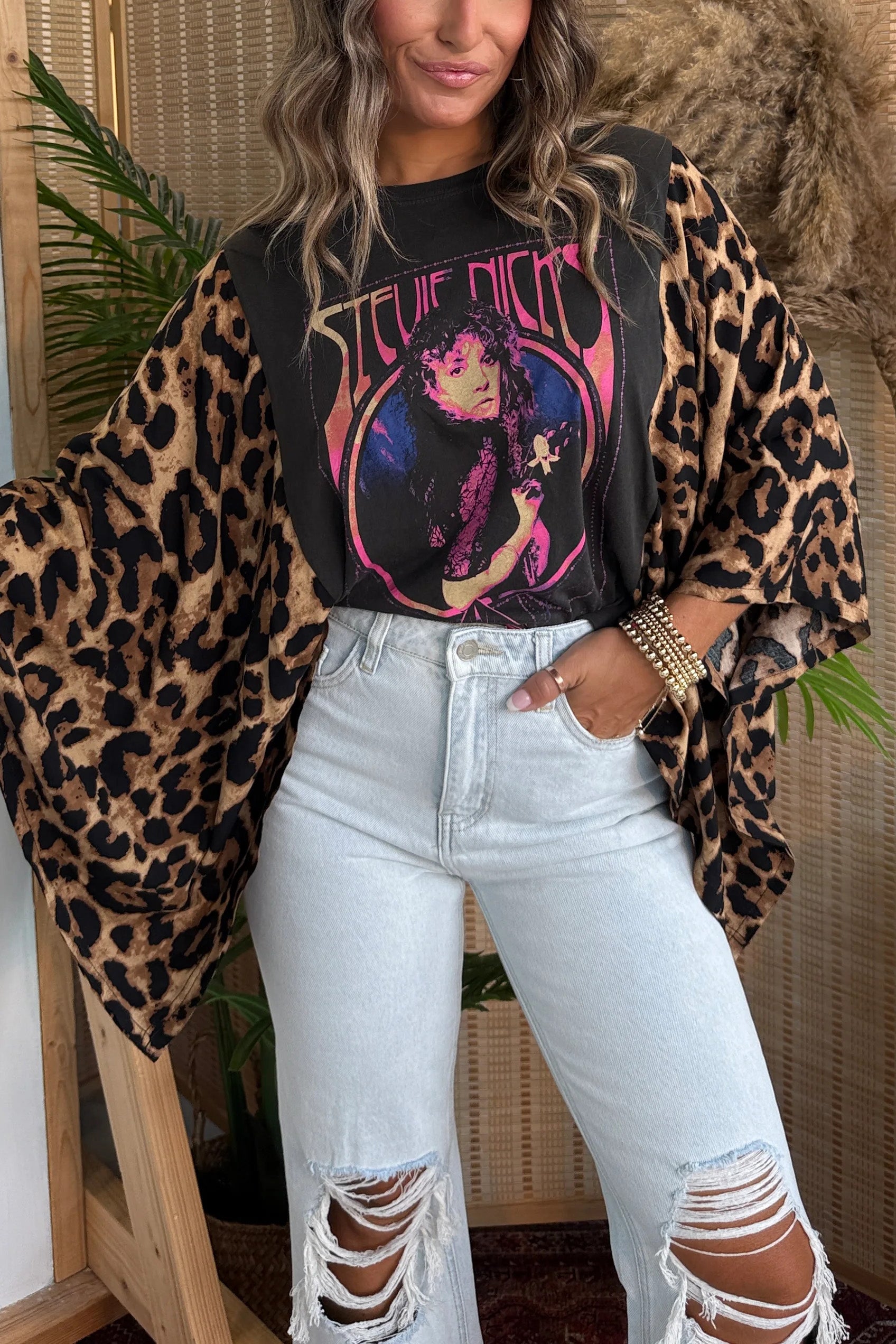 DetailsOne of a kind!Washed Vintage Graphic Tee with Batwing SleeveColor: PictureMaterial: 50% Cotton50% Recycled Mixed FabricSPU:TPCJ25081904Size:One Size Fits MostModel is Wearing a Size OSModelHeight: 5'2"Bust: 34"Waist: 27"Hips: 36"