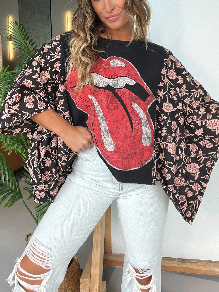 DetailsOne of a kind!Washed Vintage Graphic Tee with Batwing SleeveColor: PictureMaterial: 50% Cotton50% Recycled Mixed FabricSPU:TPCJ25031413Model MeasurementsHeight: 5'2"Bust: 34"Waist: 27"Hips: 36"