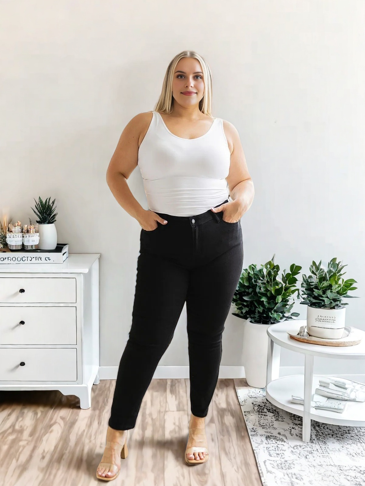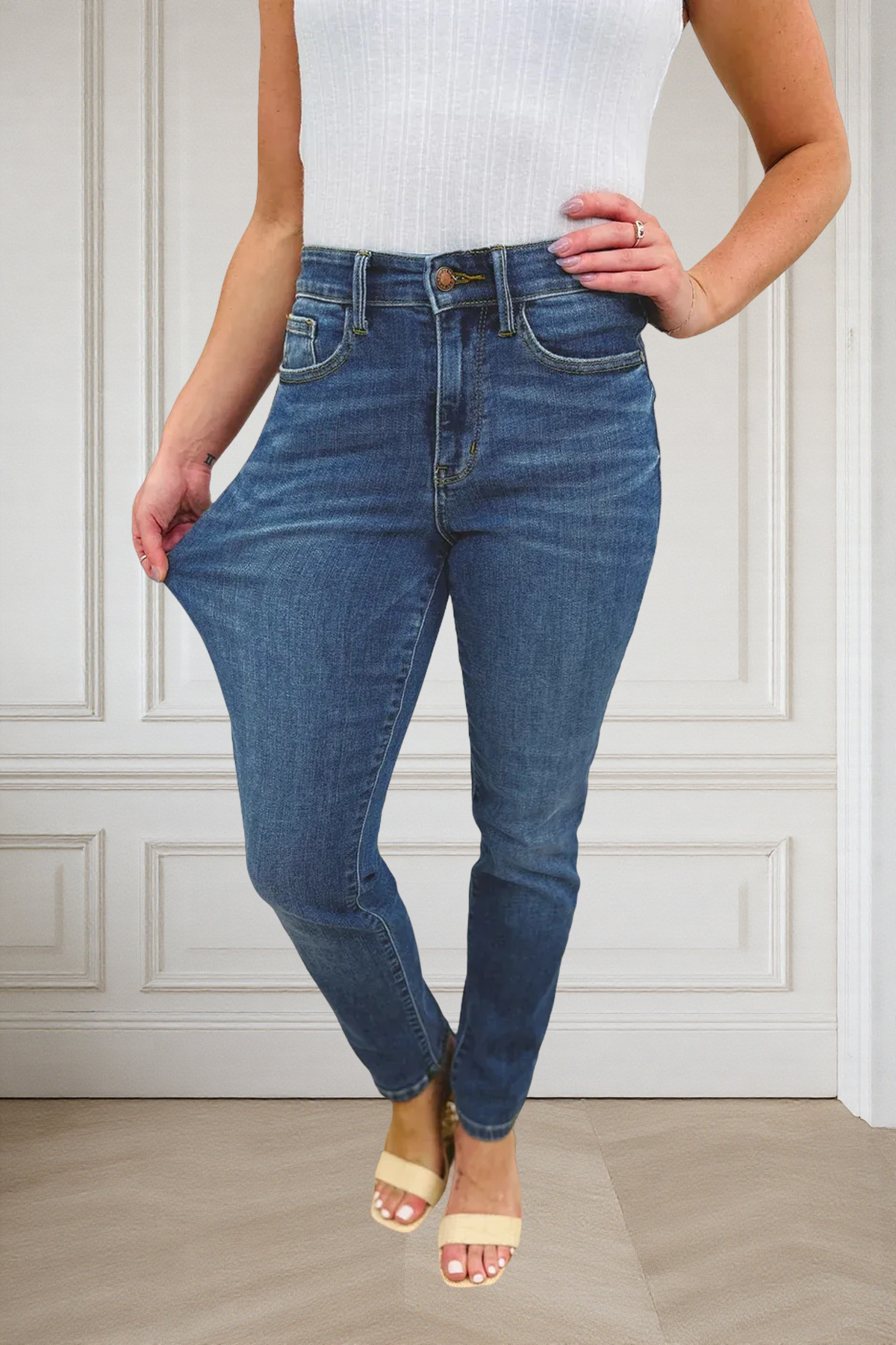 These jeans feature tummy control to smooth and sculpt your midsection, giving you a confident, streamlined silhouette.