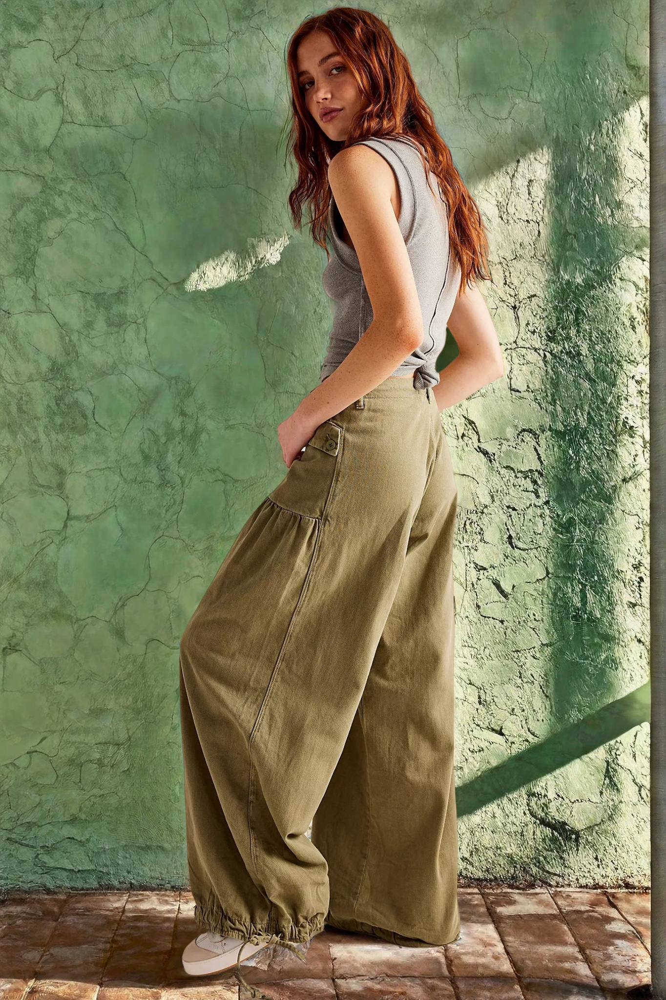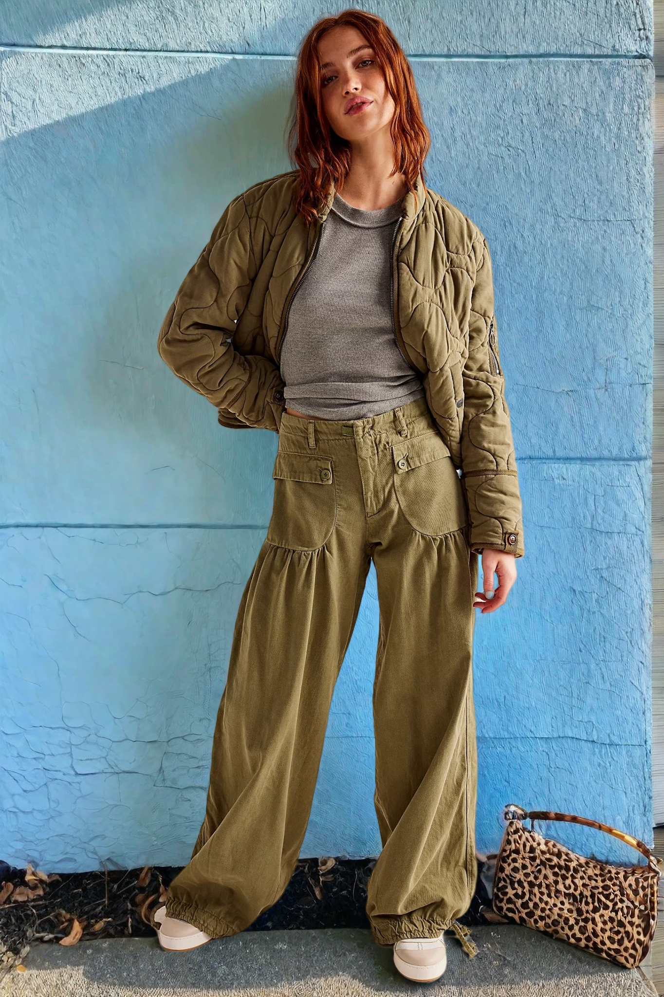 Lotus Tube Jeans featured in a mid-rise silhouette with dropped, front patch-style pockets and cinch-tie banded ankles with femme pleating throughout for added dimension.