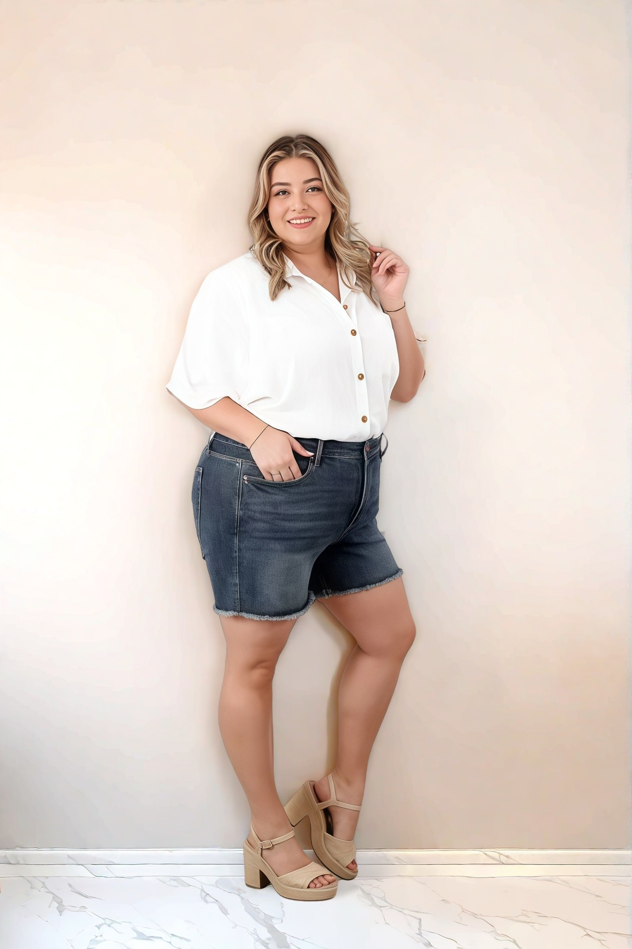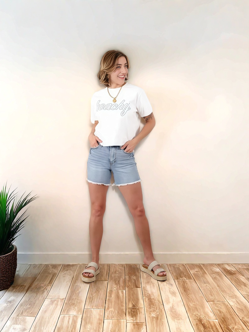 These will fit like an absolute dream! They are a subtle high rise with the softest waist that feels SO good on! Incredible stretch denim that holds its shape beautifully, so you can say goodbye to saggy shorts and hello to all-day confidence.