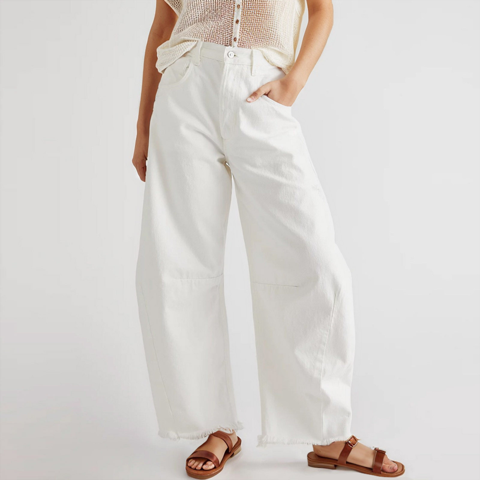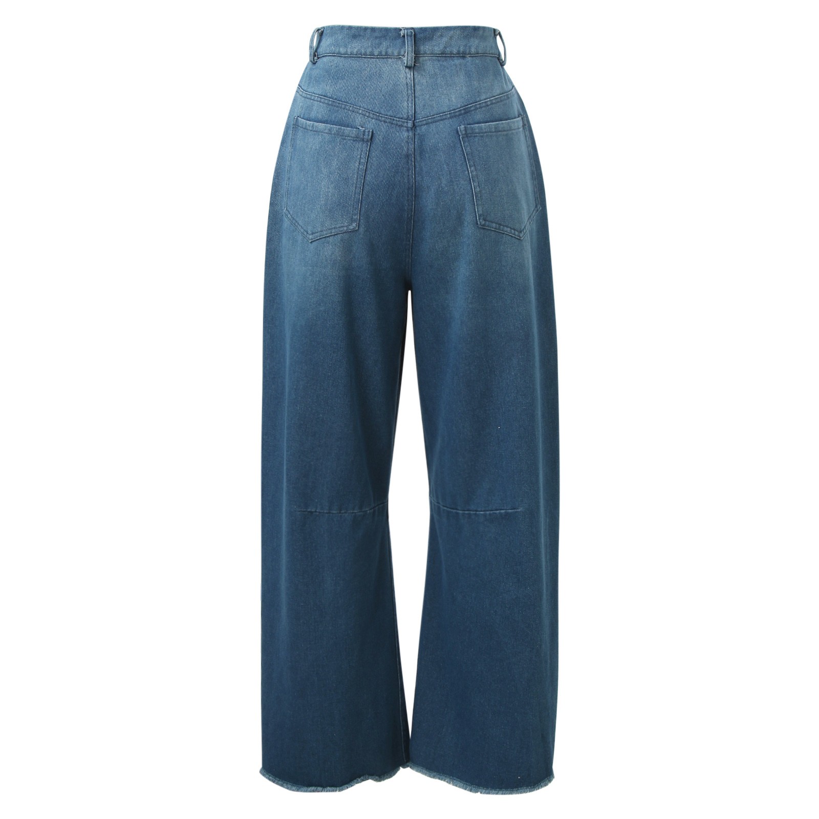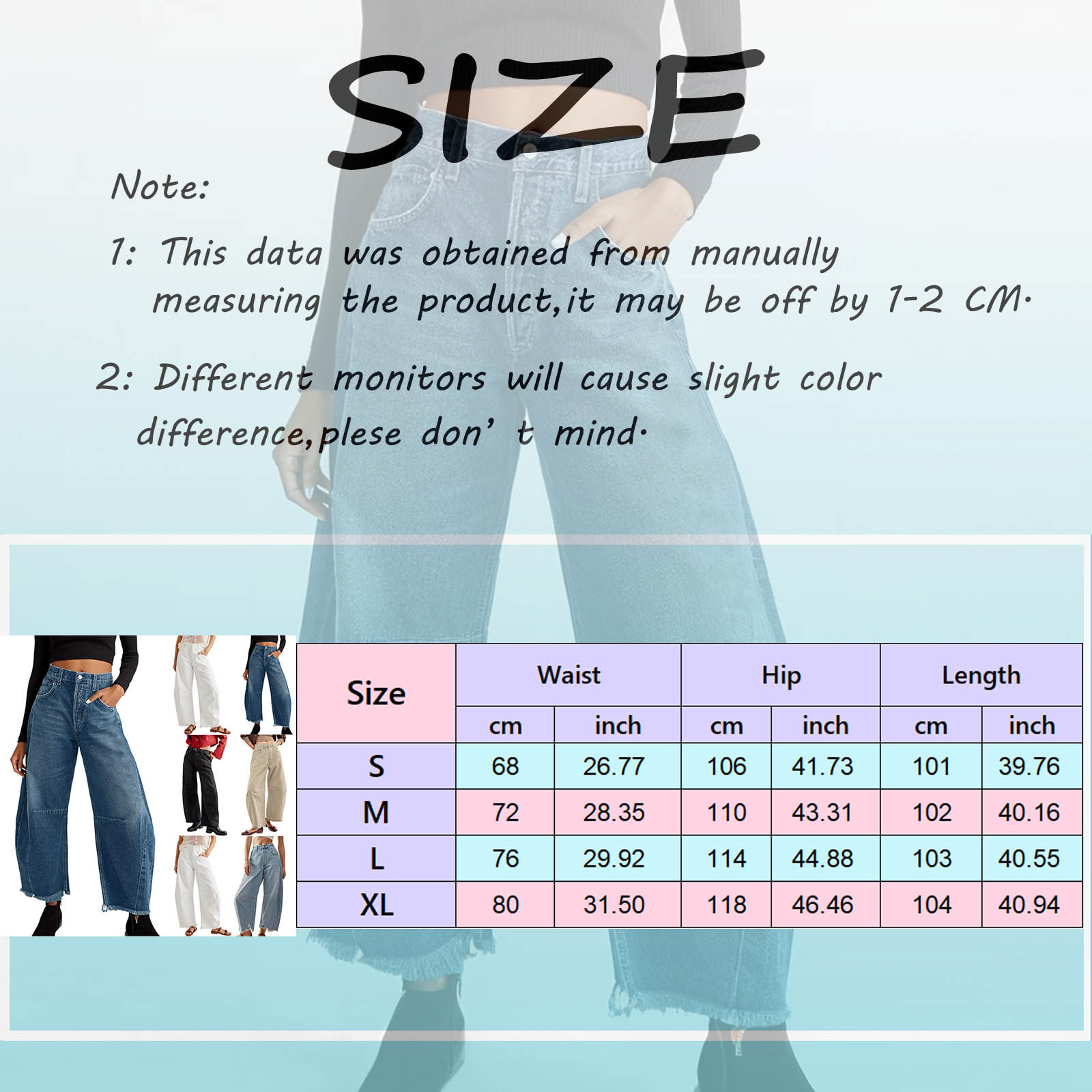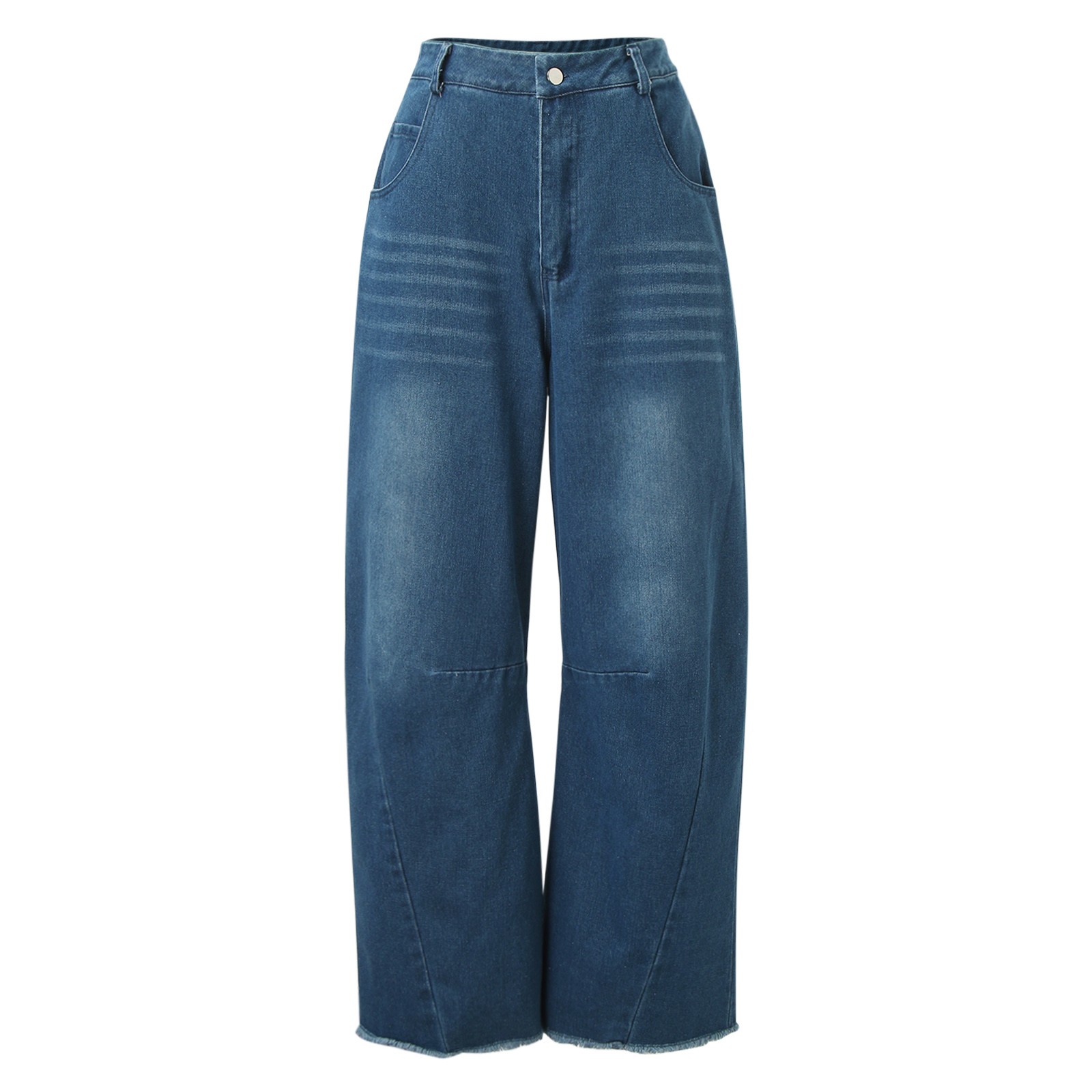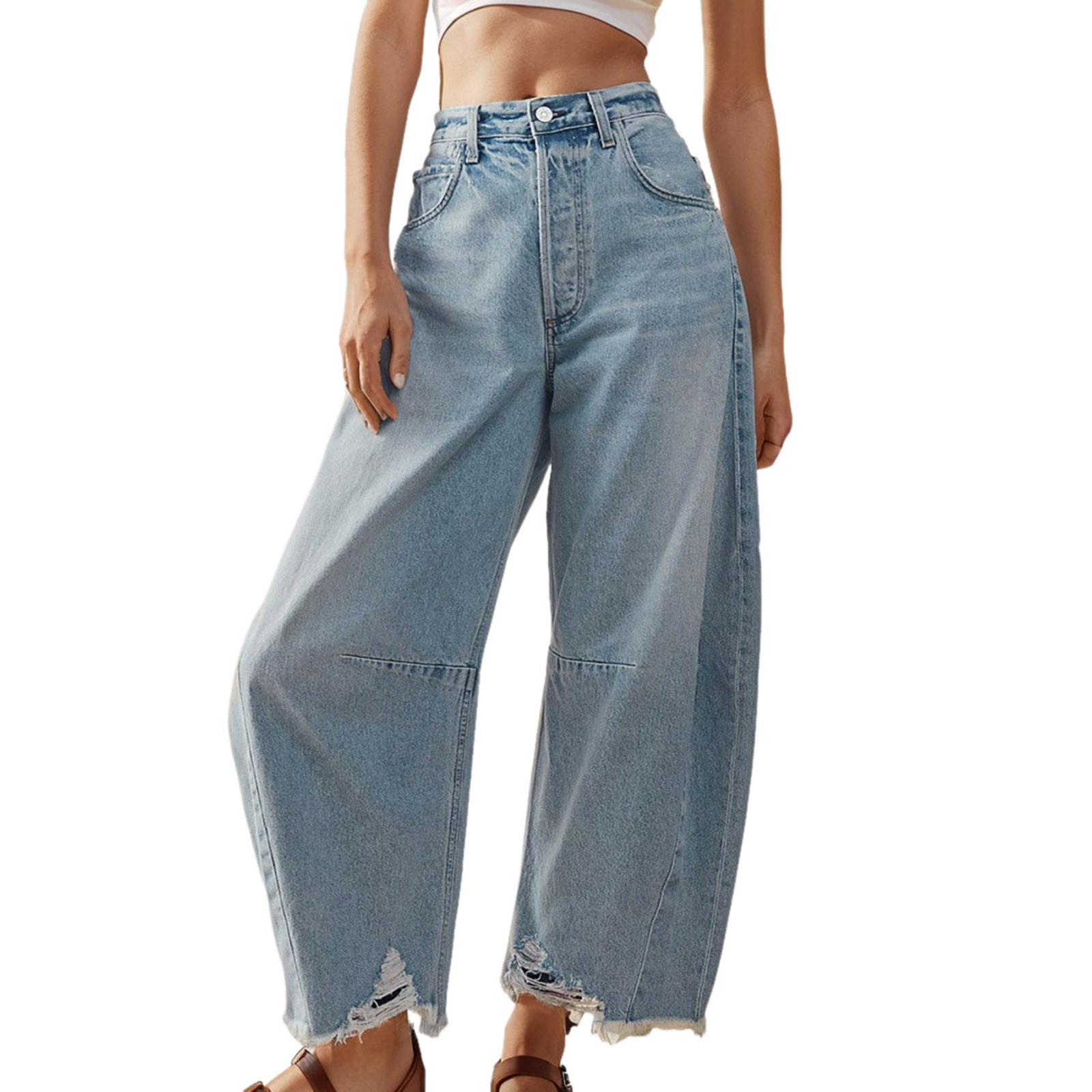 Women Baggy Wide Leg Jeans Barrel Boyfriend Cropped Hem Denim Pants