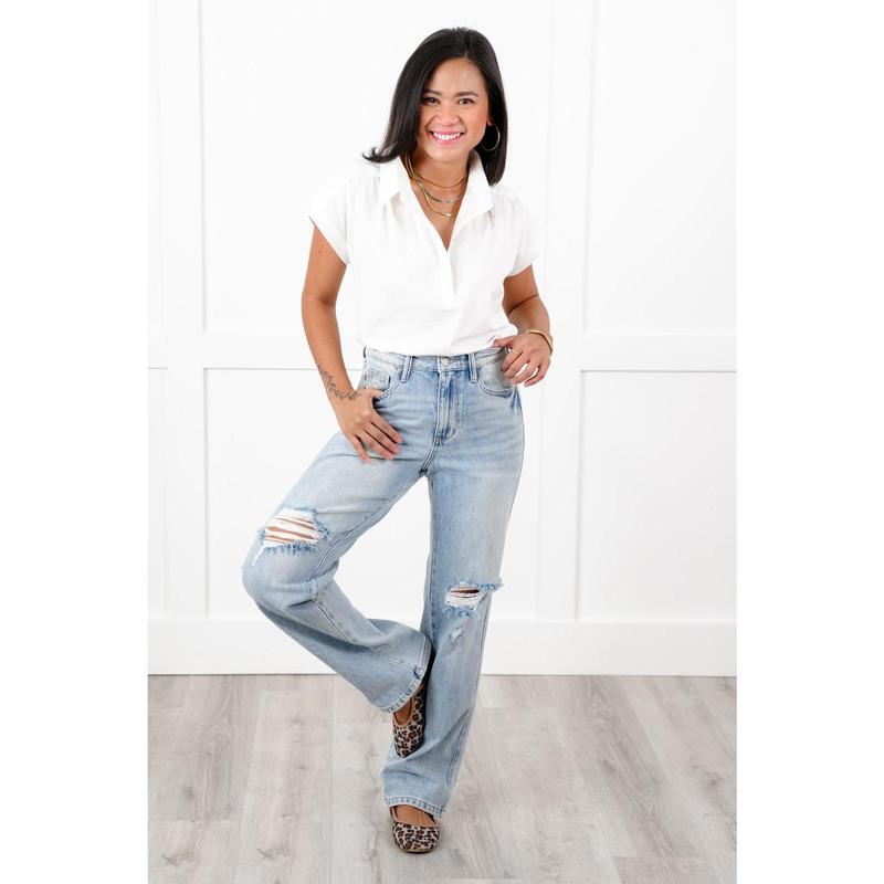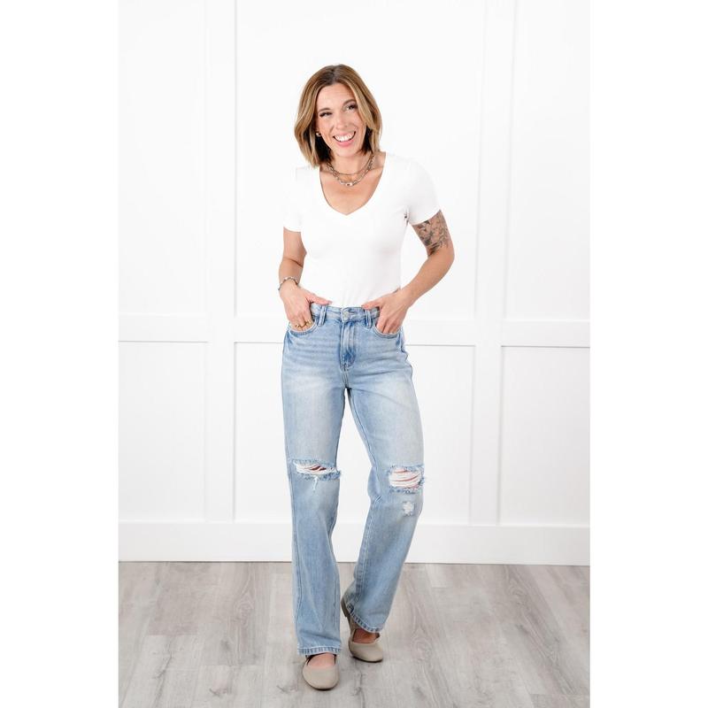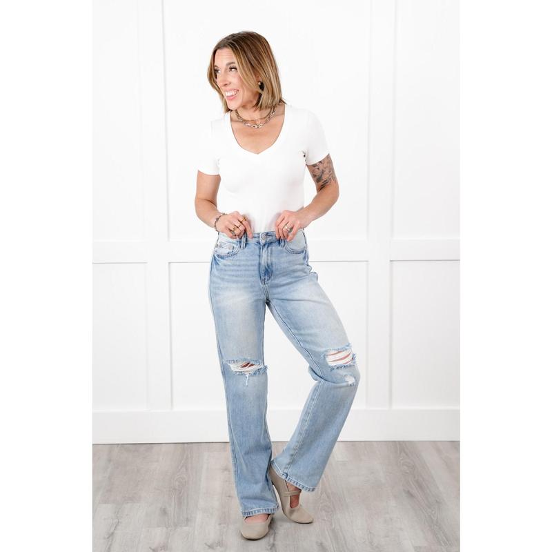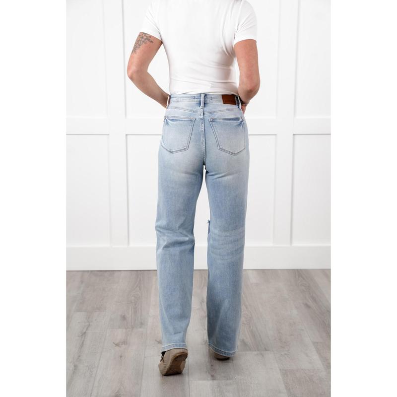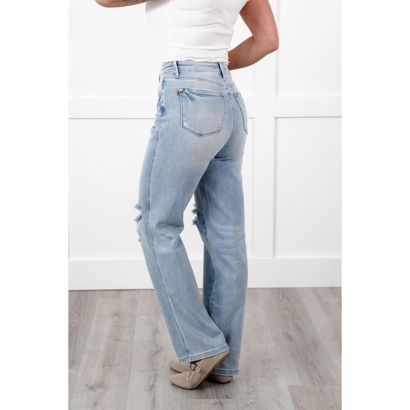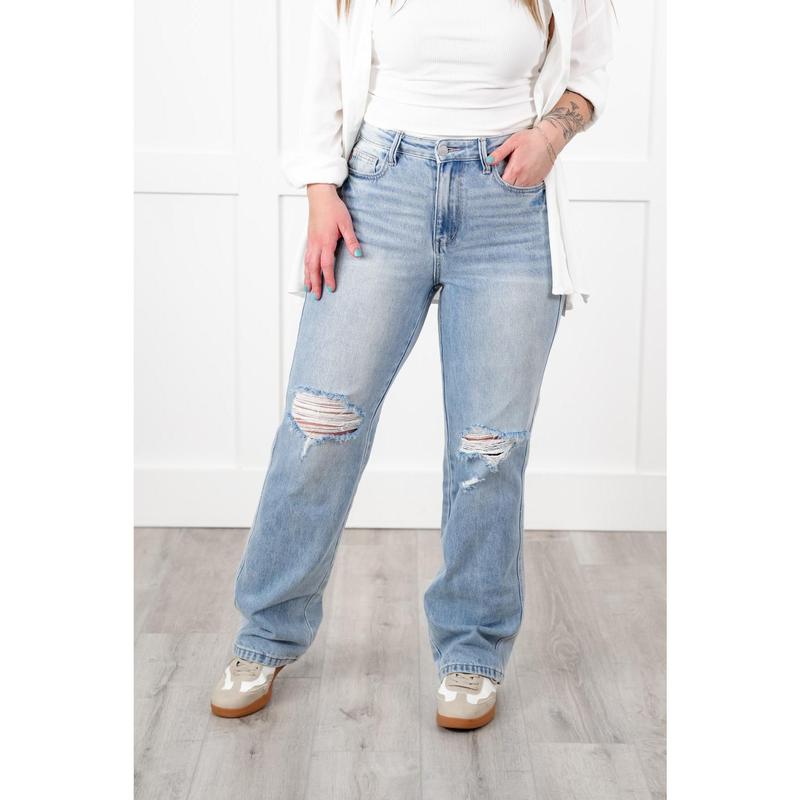 Judy North Shore High Rise Light Wash Distressed 90's Straight Leg Jeans