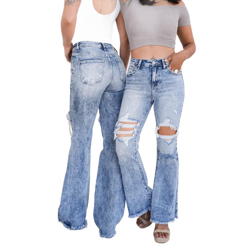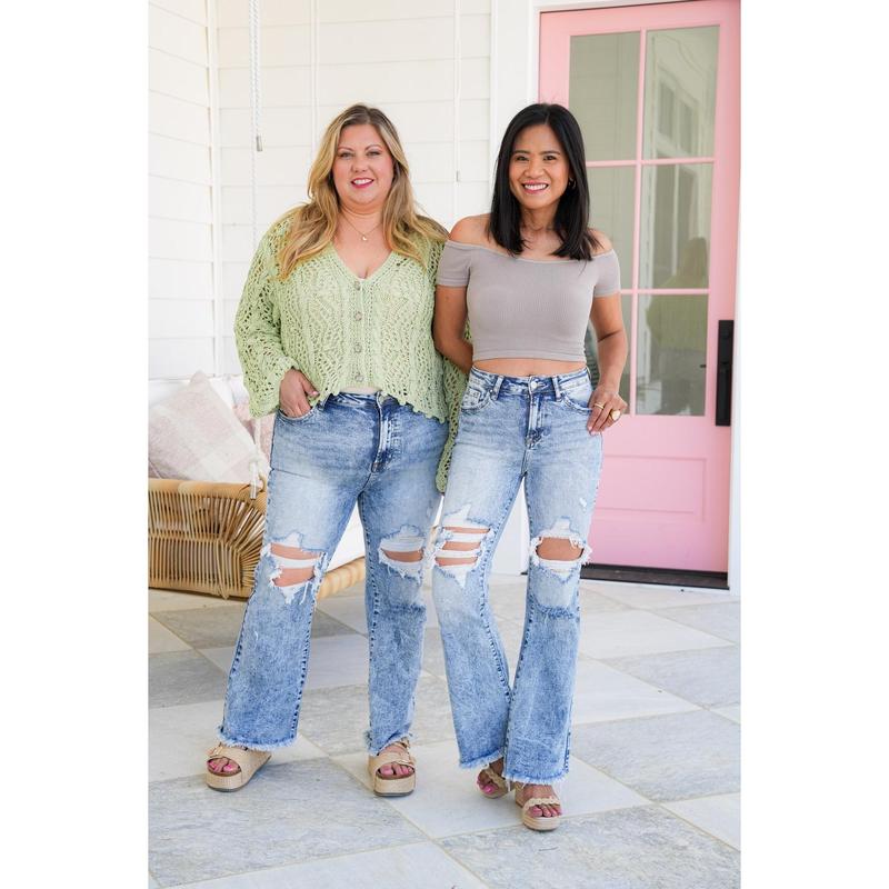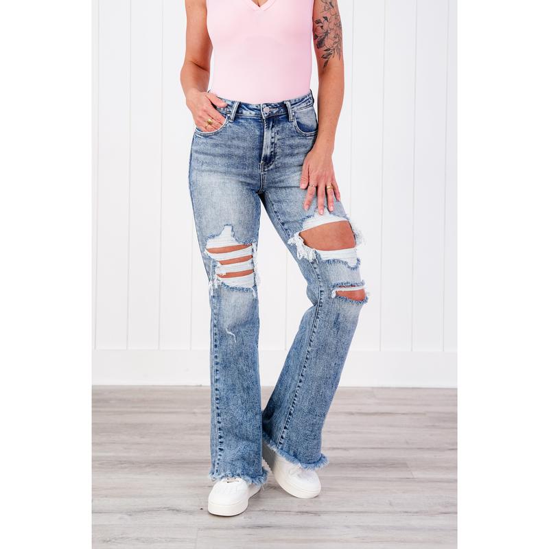 Risen Meant to Be Multiple Inseam High Rise Acid Wash Distressed Flare Jeans