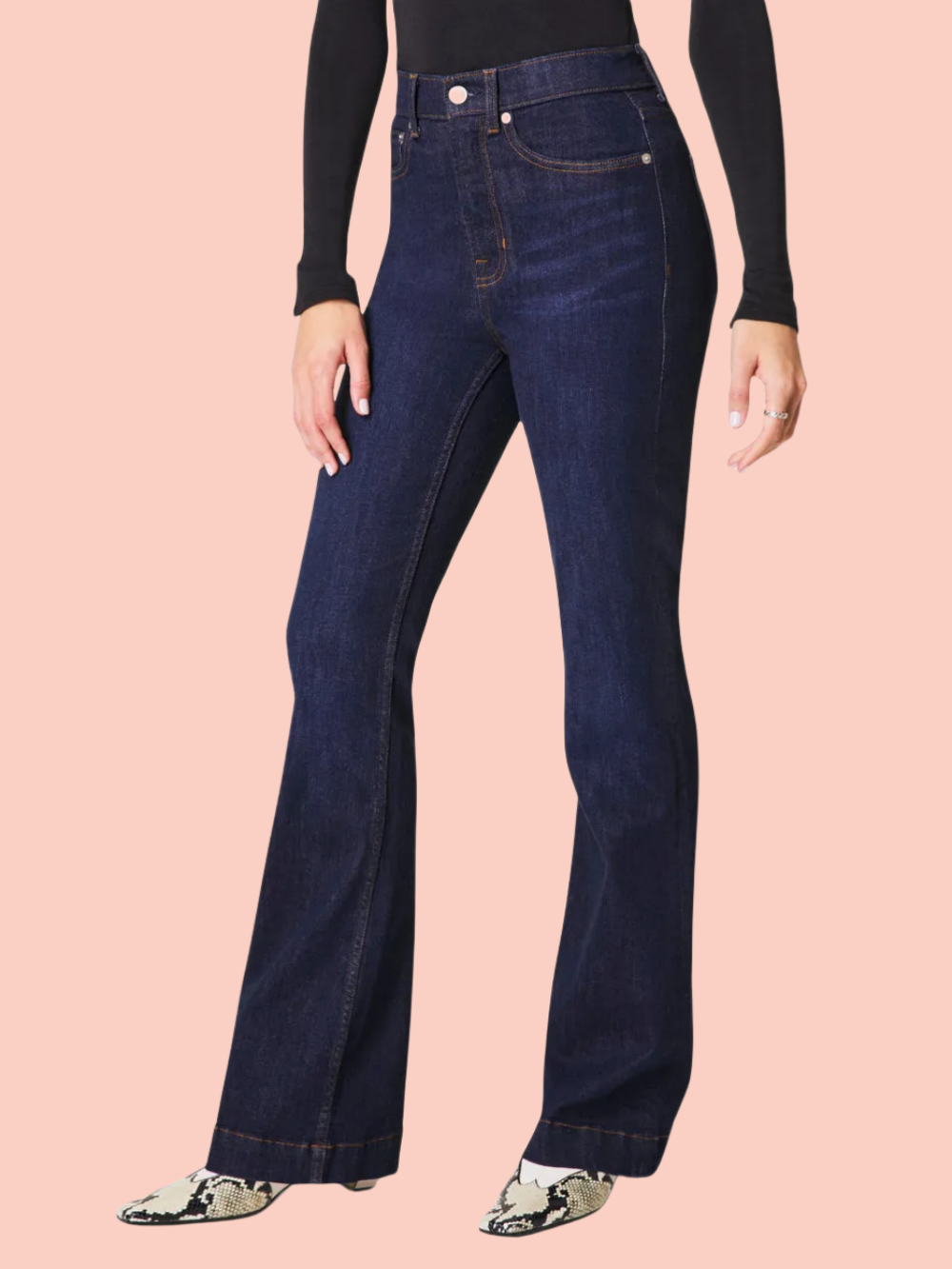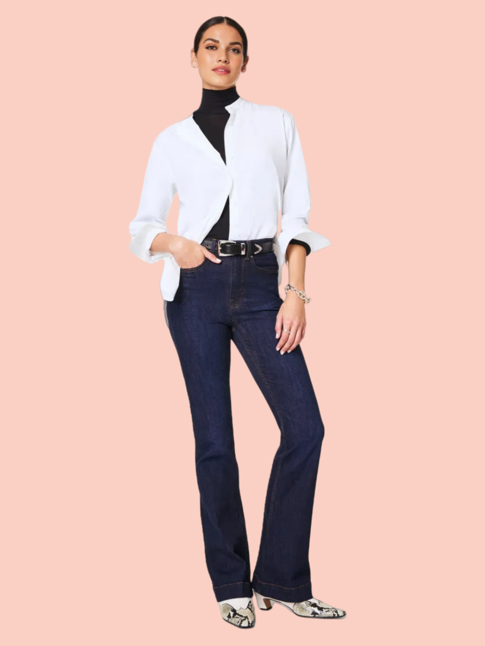 Flare jeans are universally flattering! They create the illusion of an hourglass figure for straight and narrow body types, while balancing and enhancing curves for curvier figures. If you haven’t tried flare jeans yet, these will blow you away with their fit and comfort!