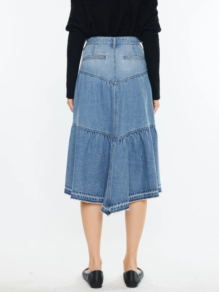 Get ready for your new summer favorite with our Hills Ranch Ruffle Denim Skirt! The flowy skirt bottom provides comfort and flirty flare. In a Medium Wash color with a 5-pocket style and rigid stretch for a true fit that won't lose its shape. Easy to match with your favorite tops. (Seriously, it's so versatile!) Don't miss out on this must-have for your summer wardrobe!
