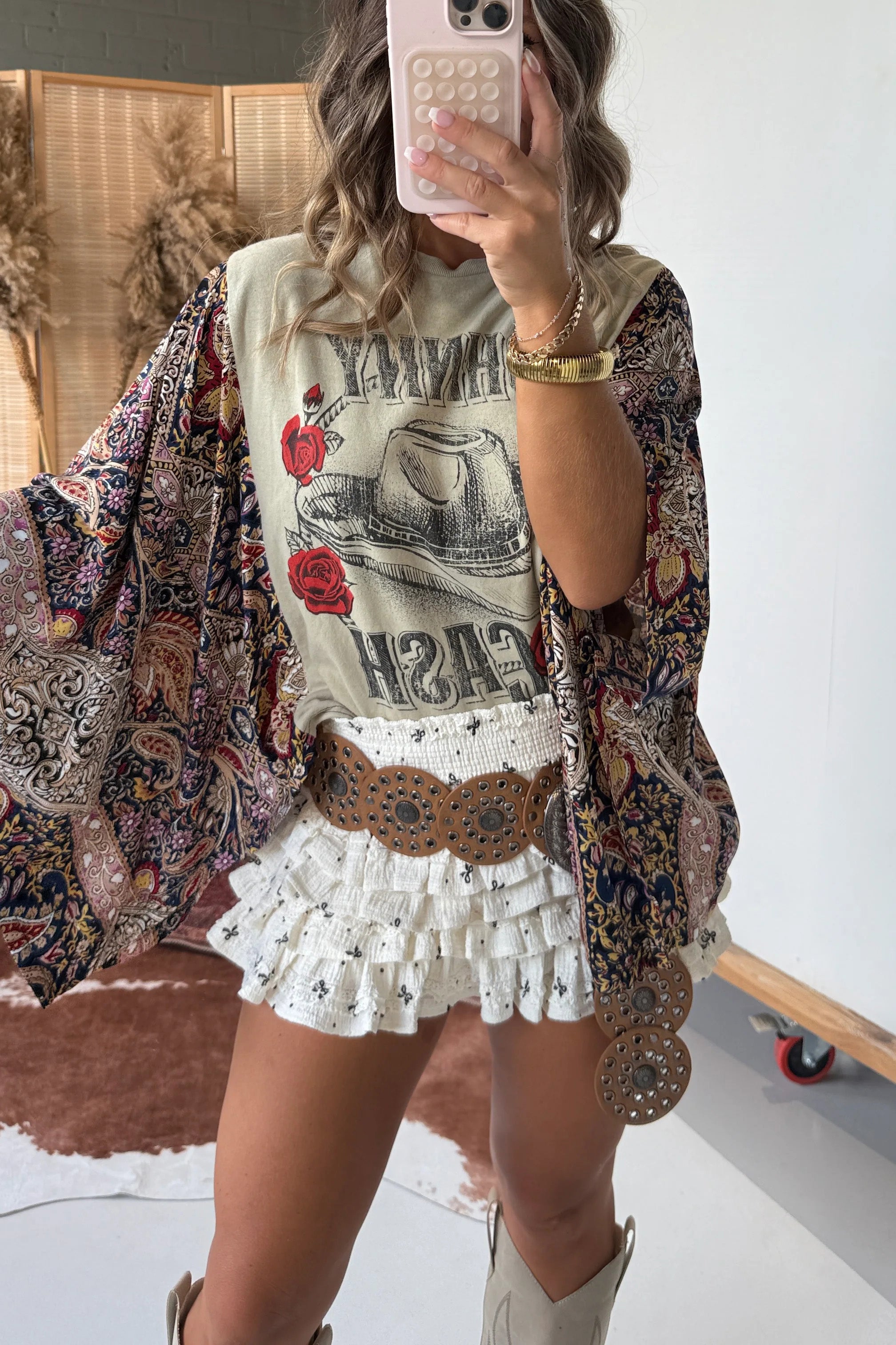 DetailsOne of a kind!Washed Vintage Graphic Tee with Batwing SleeveColor: PictureMaterial: 50% Cotton50% Recycled Mixed FabricSPU:TPCJ25081908Size:One Size Fits MostModel is Wearing a Size OSModelHeight: 5'2"Bust: 34"Waist: 27"Hips: 36"