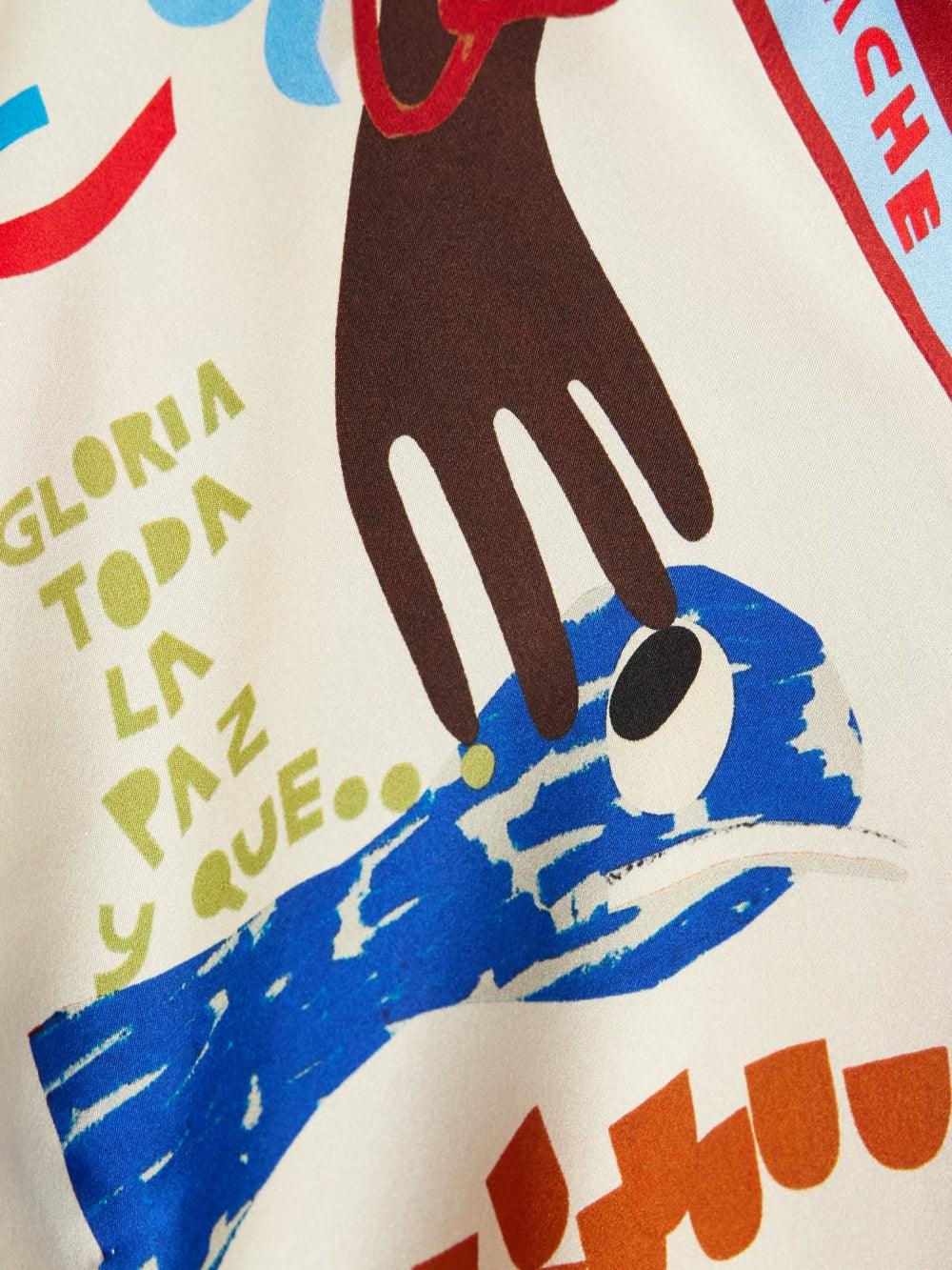 This shirt is adorned with a vibrant print by Venezuelan multidisciplinary artist Nadia Hernandez. Cut from smooth silk crepe de chine, it has a relaxed silhouette with half sleeves and a peak collar. Wear it with the matching pants to really bring out the artwork.