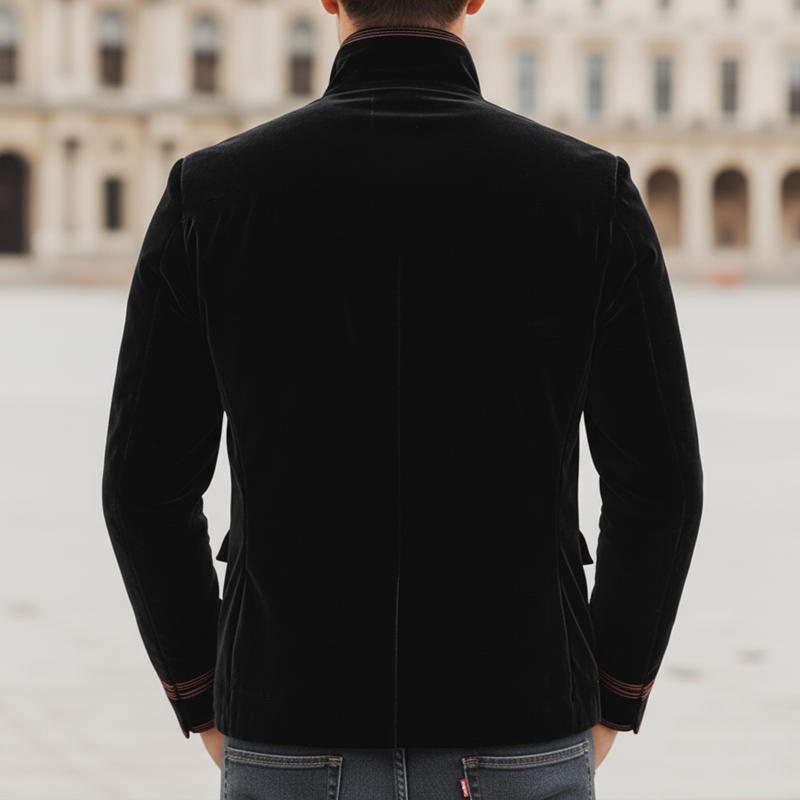 • Men's Retro Velvet Stand Collar Multi-Button Slim Fit Jacket MTA1188K3U
