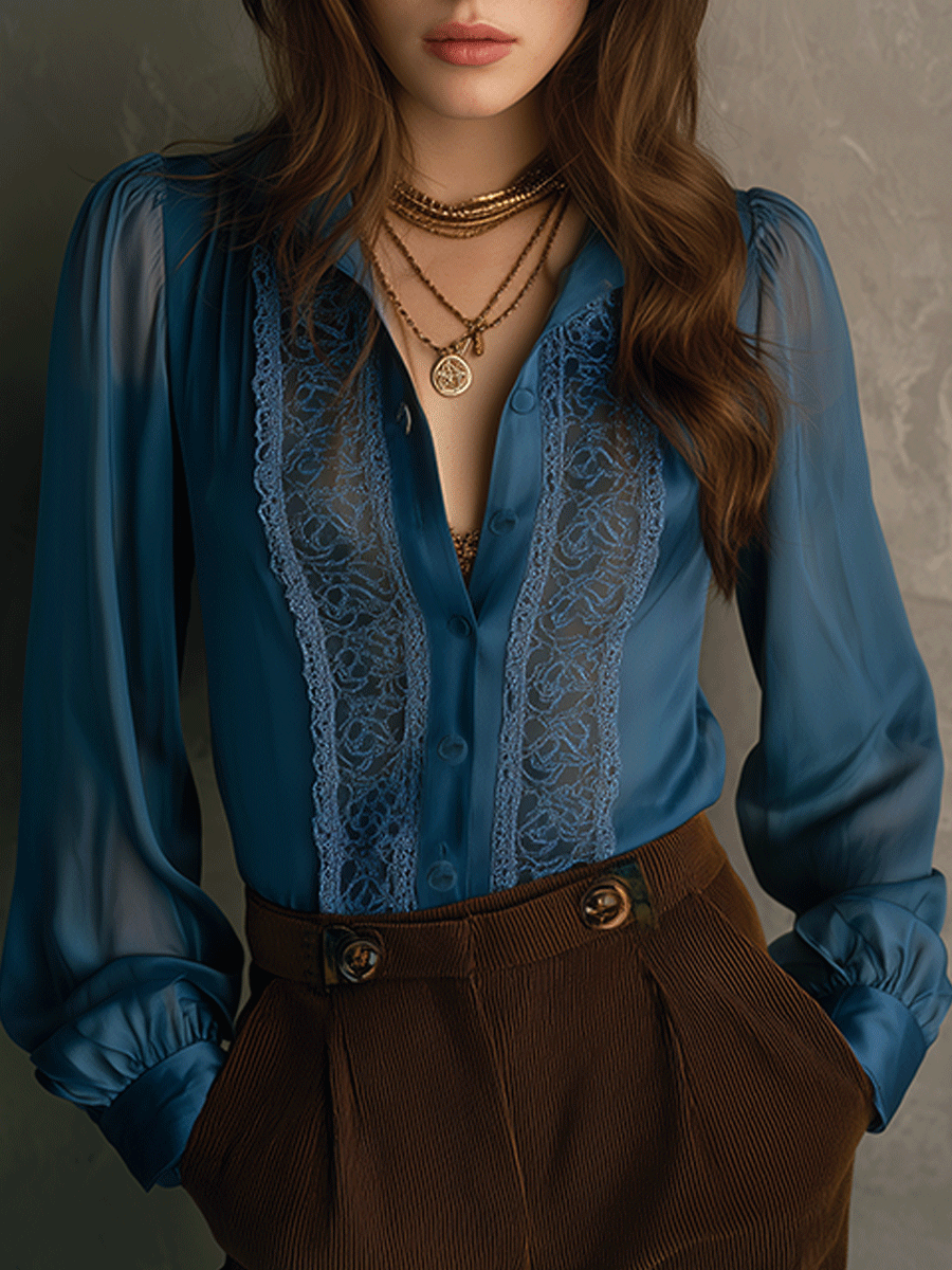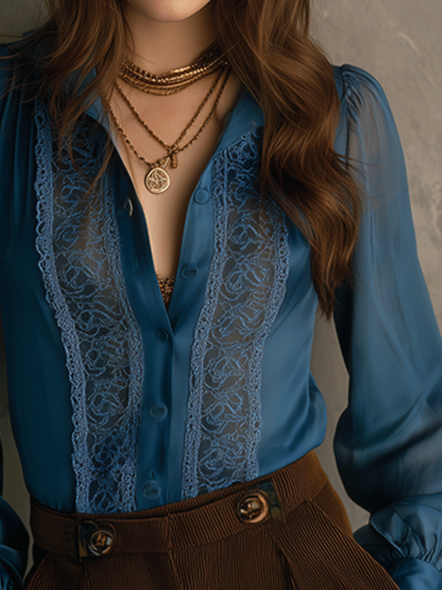 Retro Elegant Lace Flowing Long Sleeve Shirt