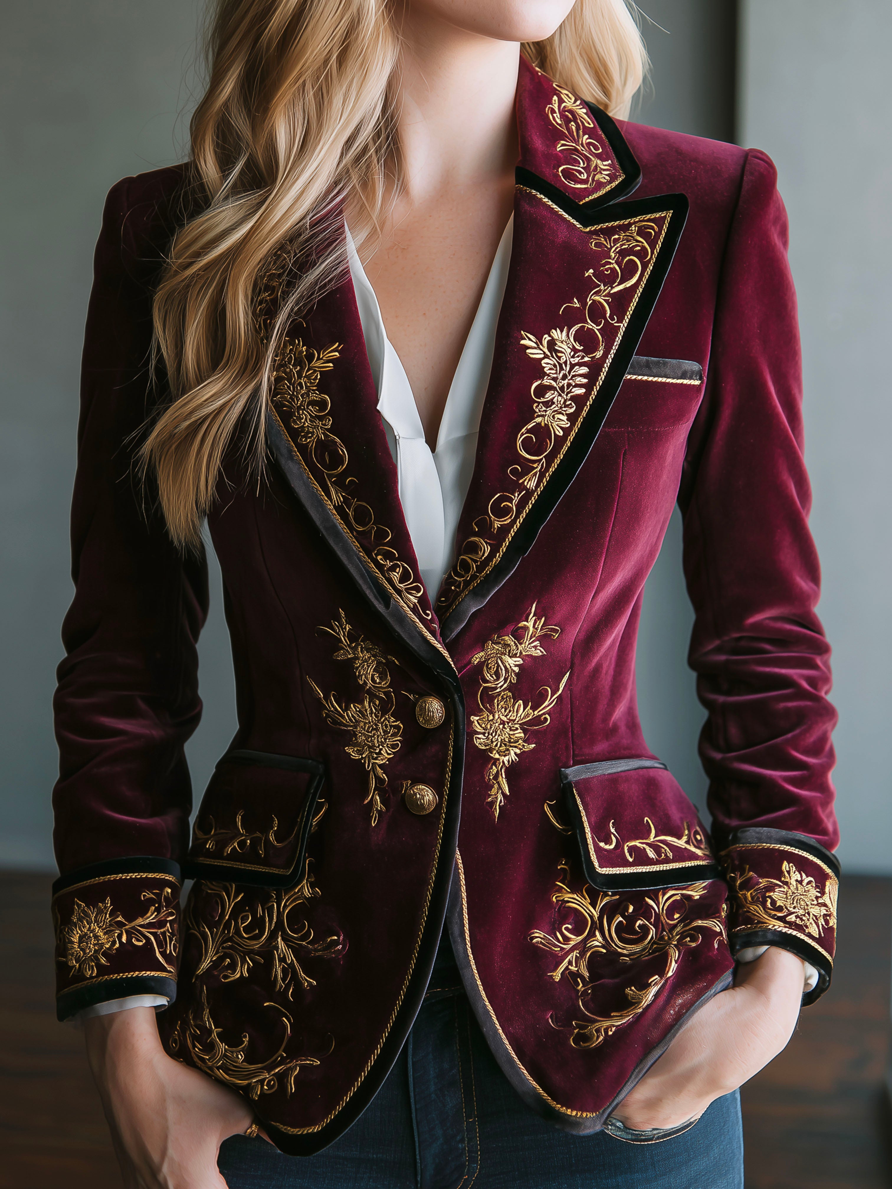Vintage Burgundy Velvet Gold Baroque Embroidered Blazer
