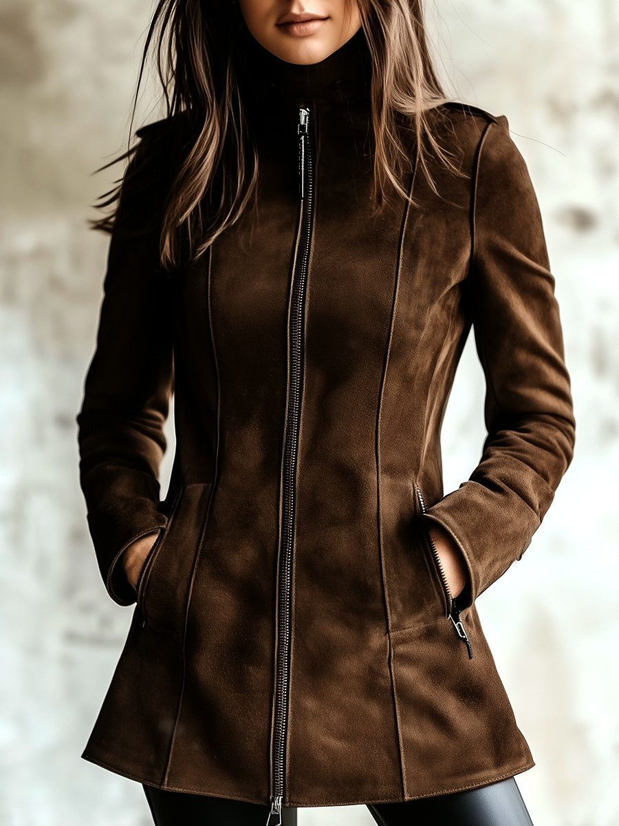 Vintage Waist-cinched Double Zipper Suede Jacket