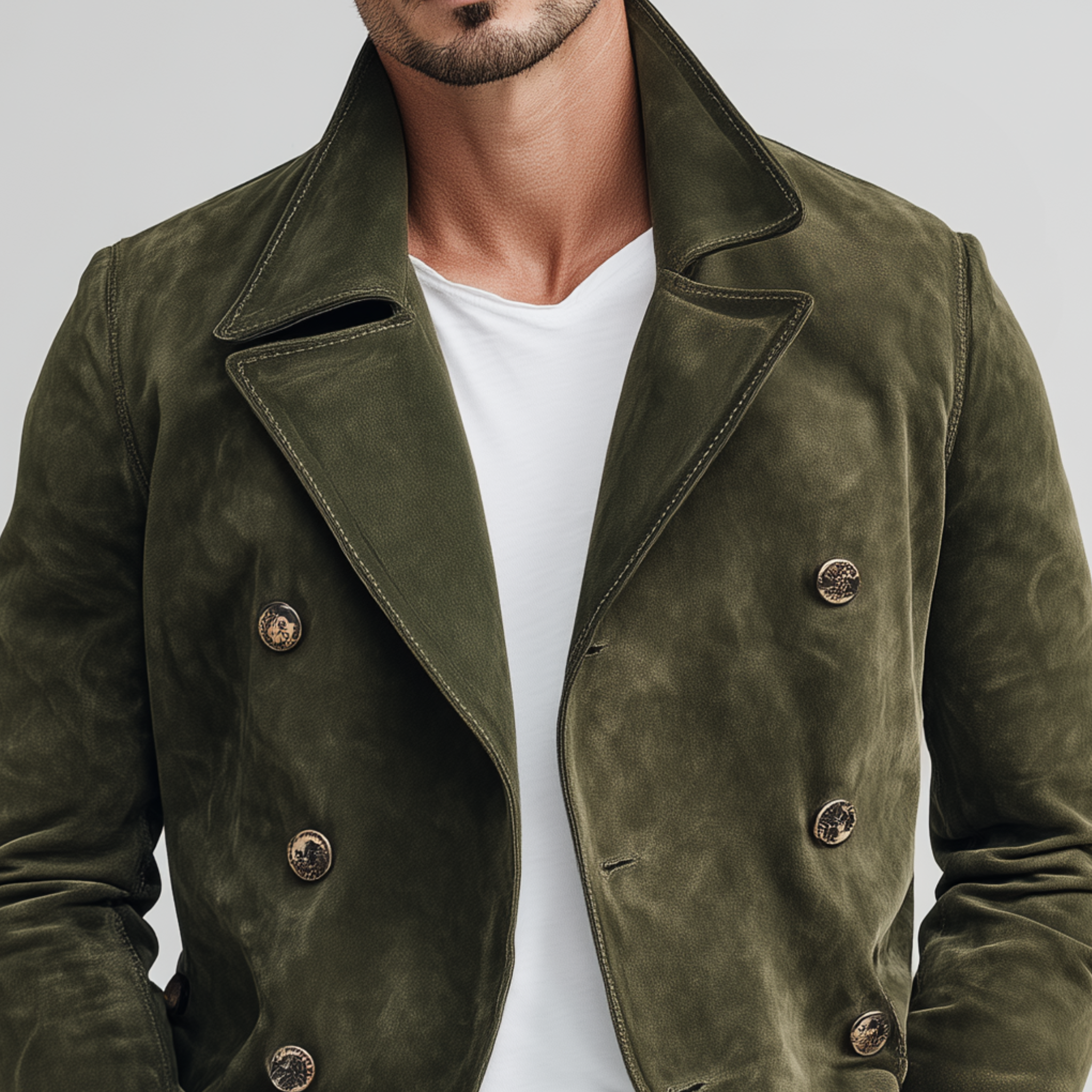 Men's Classic Casual Lapel Suede Double Breasted Jacket