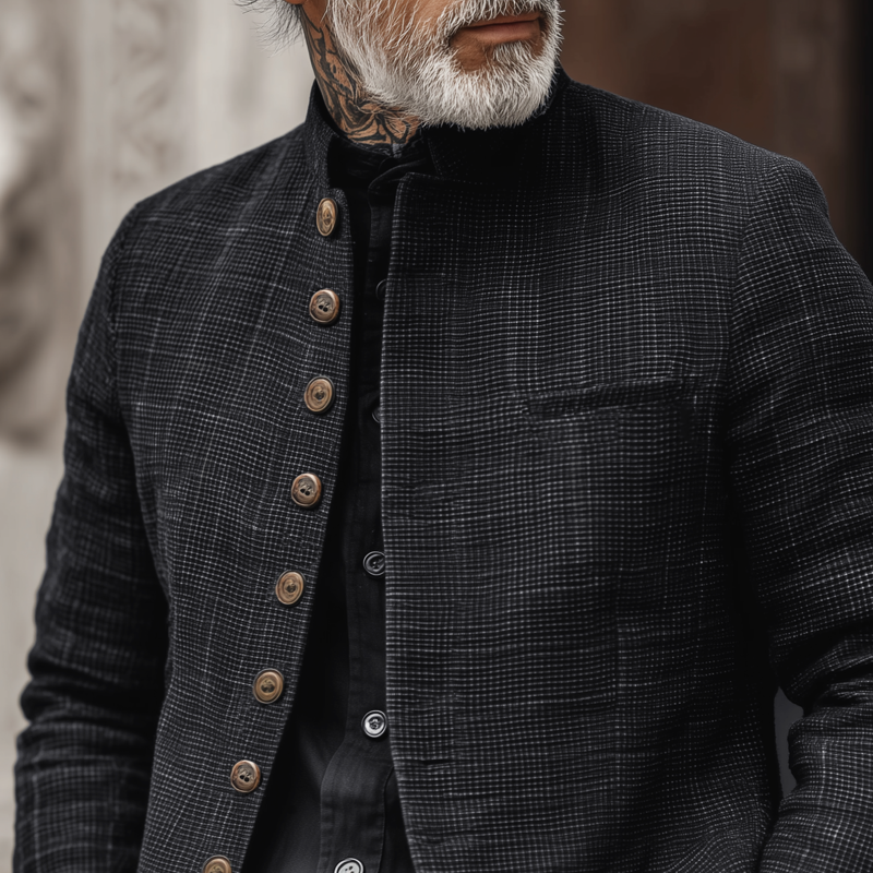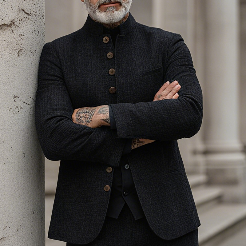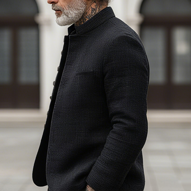 Product Name: Men’s Woven Textured Plaid Stand Collar Single-Breasted Jacket