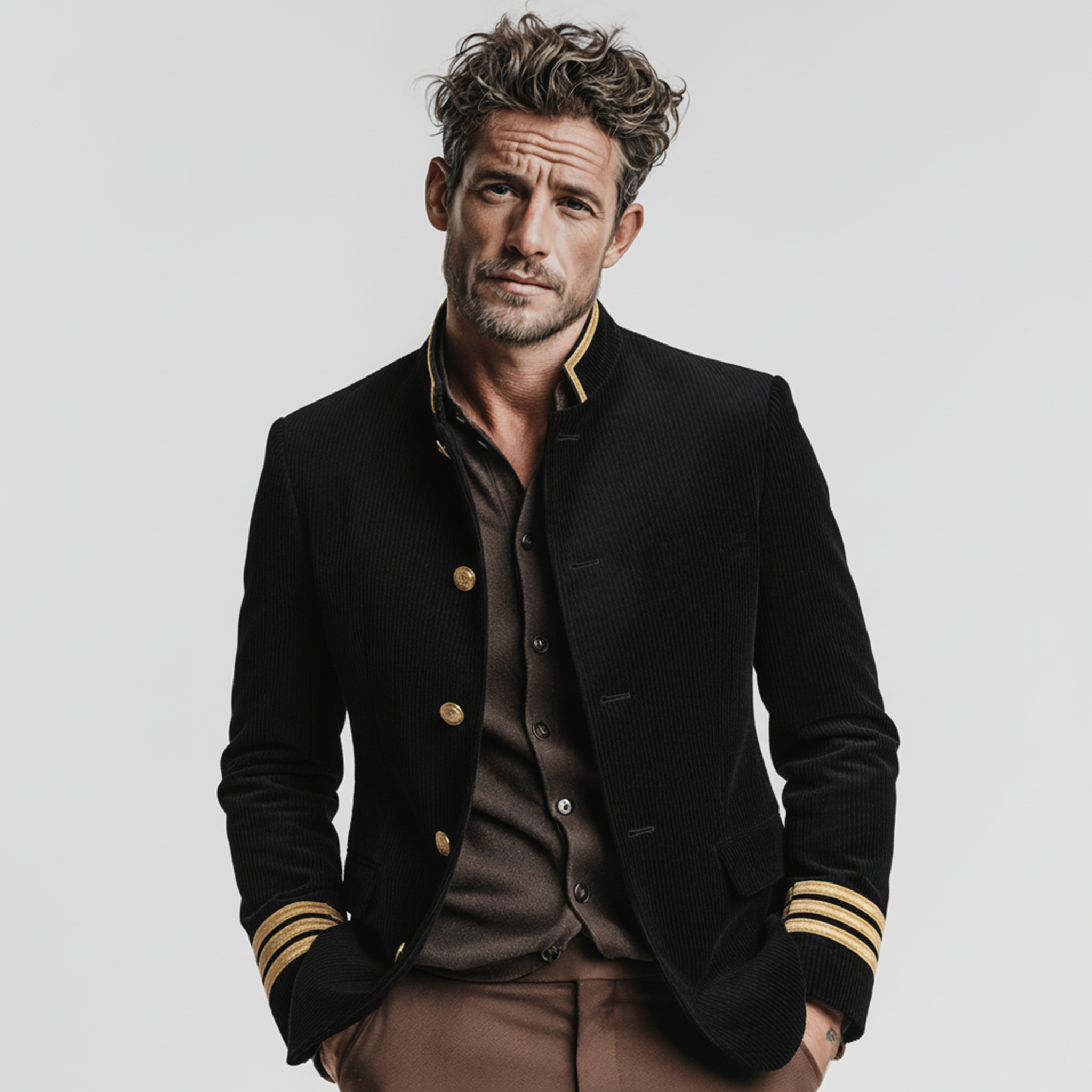 Men's Vintage Stand Collar Velvet Multi-Button Jacket MTA1901H1U