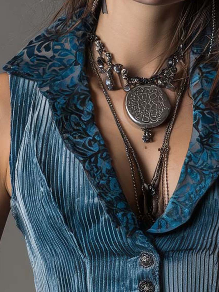 Vintage Sleeveless Lace Neck Velvet Vest