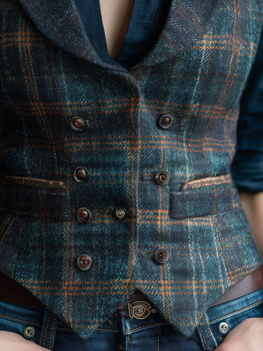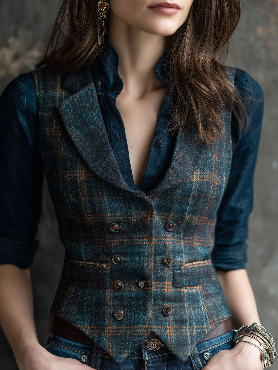 Retro Lapel Plaid Wool Vest