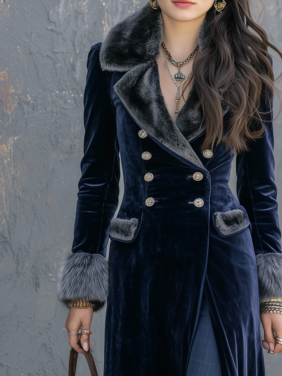 Retro Eco-friendly Fur Collar Velvet Coat
